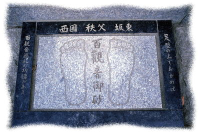 《百観音巡礼結願の寺/札所34番水潜寺》 西国、板東、秩父と合わせての百観音巡礼の結願の寺を訪れたこの冬の日は、ひっそりとしていた。 本堂の前には足型があり、この上に立って祈願すると百観音巡礼の功徳があるという。 また本堂の中には、百観音巡礼の結願を果たした多くの人たちの足跡をかいまみることができる。 筆者もこの秩父路の取材を通じて、秩父34観音霊場を3巡した。そのときそのときで、祈願した内容は異なっていたかも知れないが、納経帳にその足跡が記されている。また何れの日にか、気持ちをあらたに巡ってみたいと思う。 −1992年2月25日撮影記より− |