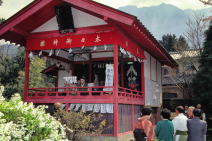 この里宮は、武甲山頂に鎮座する御獄神社の遙拝所としての意味を持つ社であるという。神楽殿の背後には大きく武甲山がそそり立っている。 (横瀬町観光協会−歳時記−より)