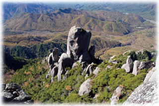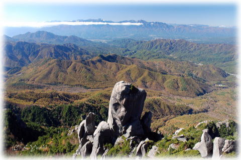 瑞牆山山頂より大ヤスリ岩から茅ヶ岳、そして後方に南アルプスを望む 〜